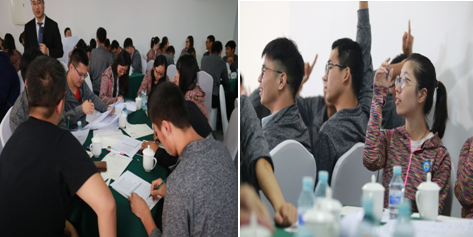 9月22日上午,在專業(yè)培訓(xùn)師的指導(dǎo)下,用貝爾賓團(tuán)隊(duì)角色理論測(cè)試每位員工的團(tuán)隊(duì)角色,結(jié)合該測(cè)試結(jié)果,進(jìn)行了一場(chǎng)充滿參與性、互動(dòng)性、實(shí)戰(zhàn)性、競(jìng)爭(zhēng)性的沙盤模擬訓(xùn)練。新員工們分組抽簽決定各自的所處的地形情況及資源狀況,通過小組合作產(chǎn)出產(chǎn)品并到統(tǒng)一的市場(chǎng)交易獲得效益,通過效益的多少等多重指標(biāo)衡量經(jīng)營的整體狀況。培訓(xùn)中,小組成員充分地展示出了當(dāng)代年輕人開闊的思維方式,會(huì)場(chǎng)熱鬧紛紛。他們思維活躍、分工有序,在充分分析內(nèi)外形勢(shì)的前提下,有效經(jīng)營,各小組均獲得了十分可觀的經(jīng)營效果,得到了培訓(xùn)團(tuán)隊(duì)的一致好評(píng),最后每個(gè)小組的精彩自我點(diǎn)評(píng)再次將培訓(xùn)推向高潮。會(huì)后大家意猶未盡,午餐時(shí)分依然在探討思路和方法。