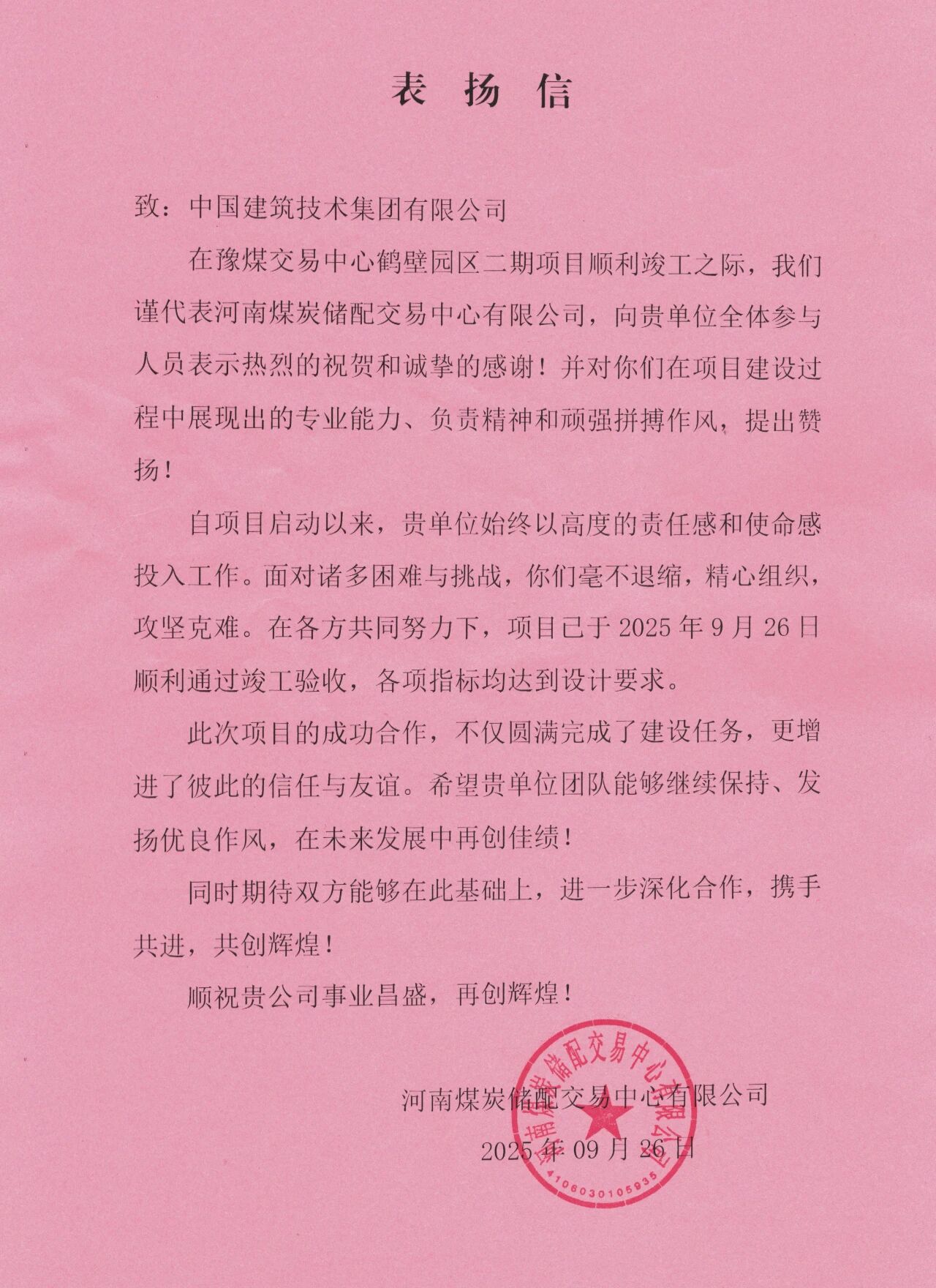 建設(shè)過程中,集團公司領(lǐng)導親臨指導,項目團隊頂風冒雪、晝夜奮戰(zhàn),高效推進項目進程,圓滿完成各節(jié)點目標,建設(shè)單位發(fā)來表揚信,贏得業(yè)主與政府贊譽,盡顯央企擔當。此次項目竣工,標志著中國建筑技術(shù)集團在煤炭及倉儲物流工程建設(shè)領(lǐng)域?qū)崿F(xiàn)新突破,為區(qū)域能源基礎(chǔ)設(shè)施升級添上了濃墨重彩的一筆。