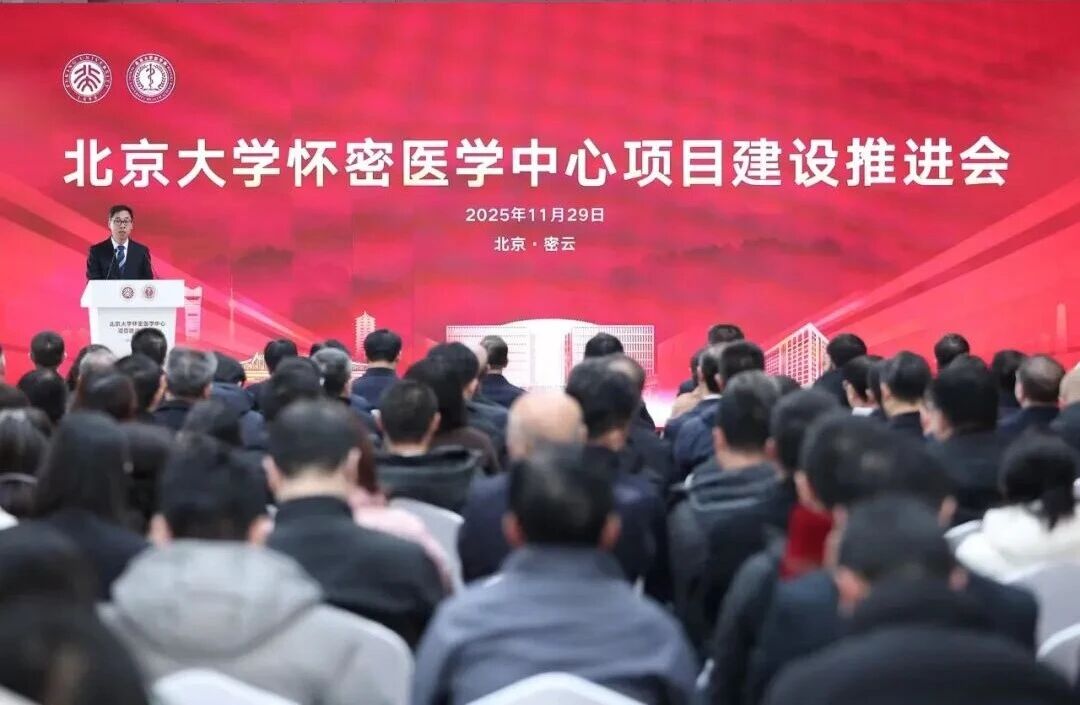 喬杰在講話中表示,站在“十四五”收官與“十五五”開局關鍵節(jié)點,北京大學懷密醫(yī)學中心作為北大醫(yī)學未來發(fā)展的重要戰(zhàn)略,承載著北大醫(yī)學城、世界醫(yī)學谷構想。中心以創(chuàng)建世界一流醫(yī)學教育、前沿交叉研究和創(chuàng)新轉(zhuǎn)化“三個中心”為目標,助力前沿交叉研究與科研產(chǎn)業(yè)融合,積極服務首都及密云發(fā)展,為北京國際科創(chuàng)中心與國家醫(yī)藥衛(wèi)生事業(yè)注入北大醫(yī)學新動能。