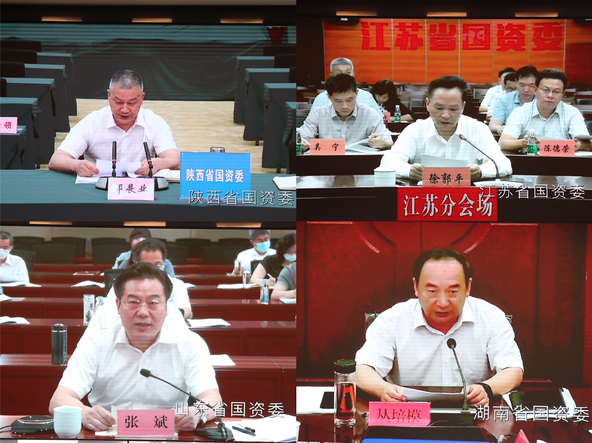 會上,陜西、江蘇、山東、湖南等4省國資委主要負責同志通過視頻會議系統(tǒng)作了交流發(fā)言。國務(wù)院國資委總會計師、副秘書長,駐委紀檢監(jiān)察組,各廳局、直屬事業(yè)單位負責同志在主會場,各省、自治區(qū)、直轄市及計劃單列市和新疆生產(chǎn)建設(shè)兵團國資委負責同志在當?shù)胤謺鰠⒓訒h。