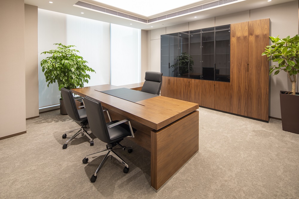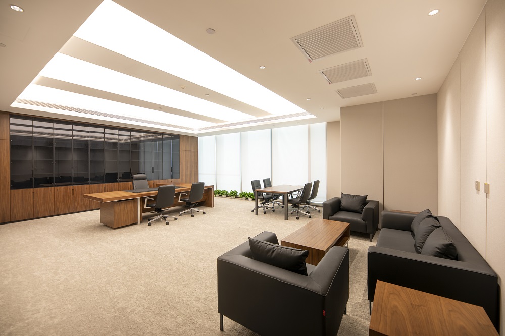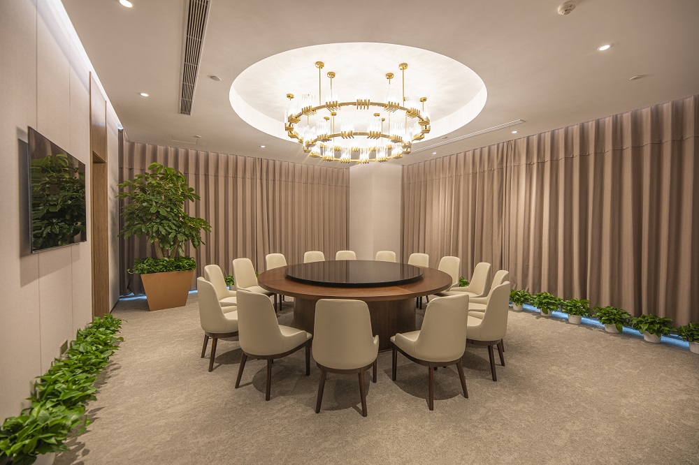 本次改造根據(jù)使用單位的需求,在維持建筑外立面和室外景觀的前提下,對原有建筑進行了平面重新布局及裝飾裝修,并根據(jù)新的使用功能對機電系統(tǒng)進行了調整。改造后的建筑滿足現(xiàn)行的建筑標準規(guī)范,并滿足使用方的現(xiàn)代辦公需求。以“一級央企、國內一流、具有國際影響力”的大國企業(yè)總部形象服務全國并面向國際舞臺,所以重點打造莊重、現(xiàn)代、統(tǒng)一、大氣、低調、品質的空間特點,使辦公空間代表大國形象、展示央企文化;延續(xù)傳統(tǒng)國企表現(xiàn)出的典型特征,提升內部空間整體品質。圍繞設計理念構思方案,把握規(guī)劃布局的宏觀標準,定位企業(yè)形象,提煉設計手法,營造空間氛圍;對大廳、會議、報告廳、會客、餐廳、辦公等重點空間深化設計匹配一級央企的總部形象。
