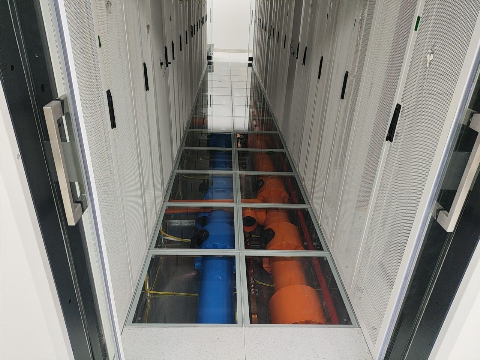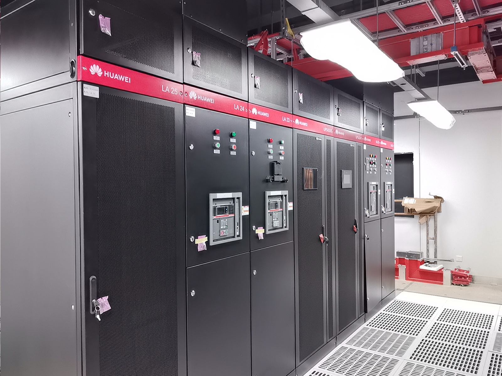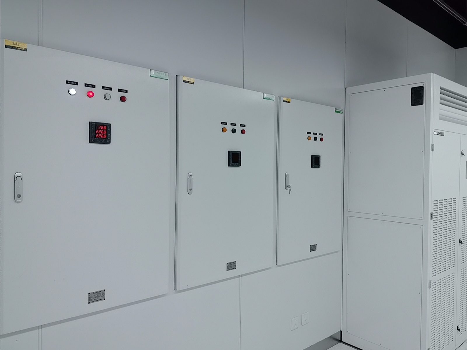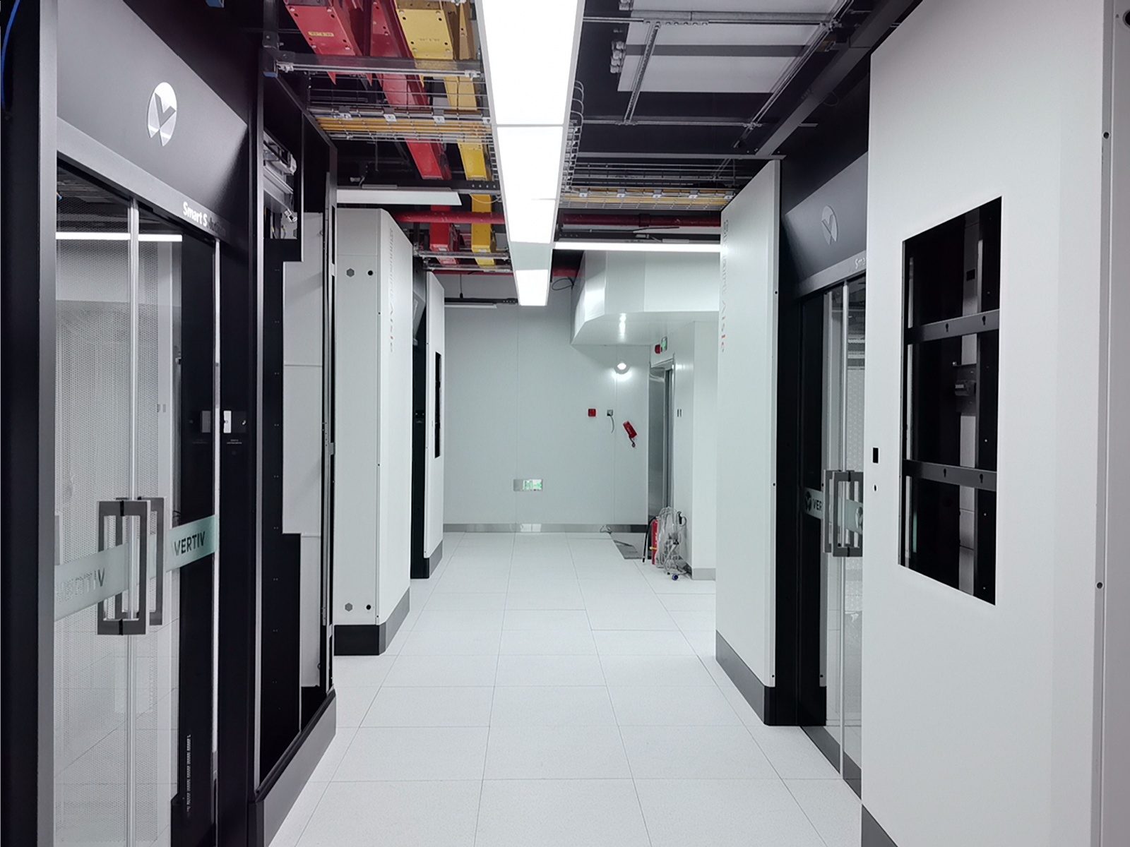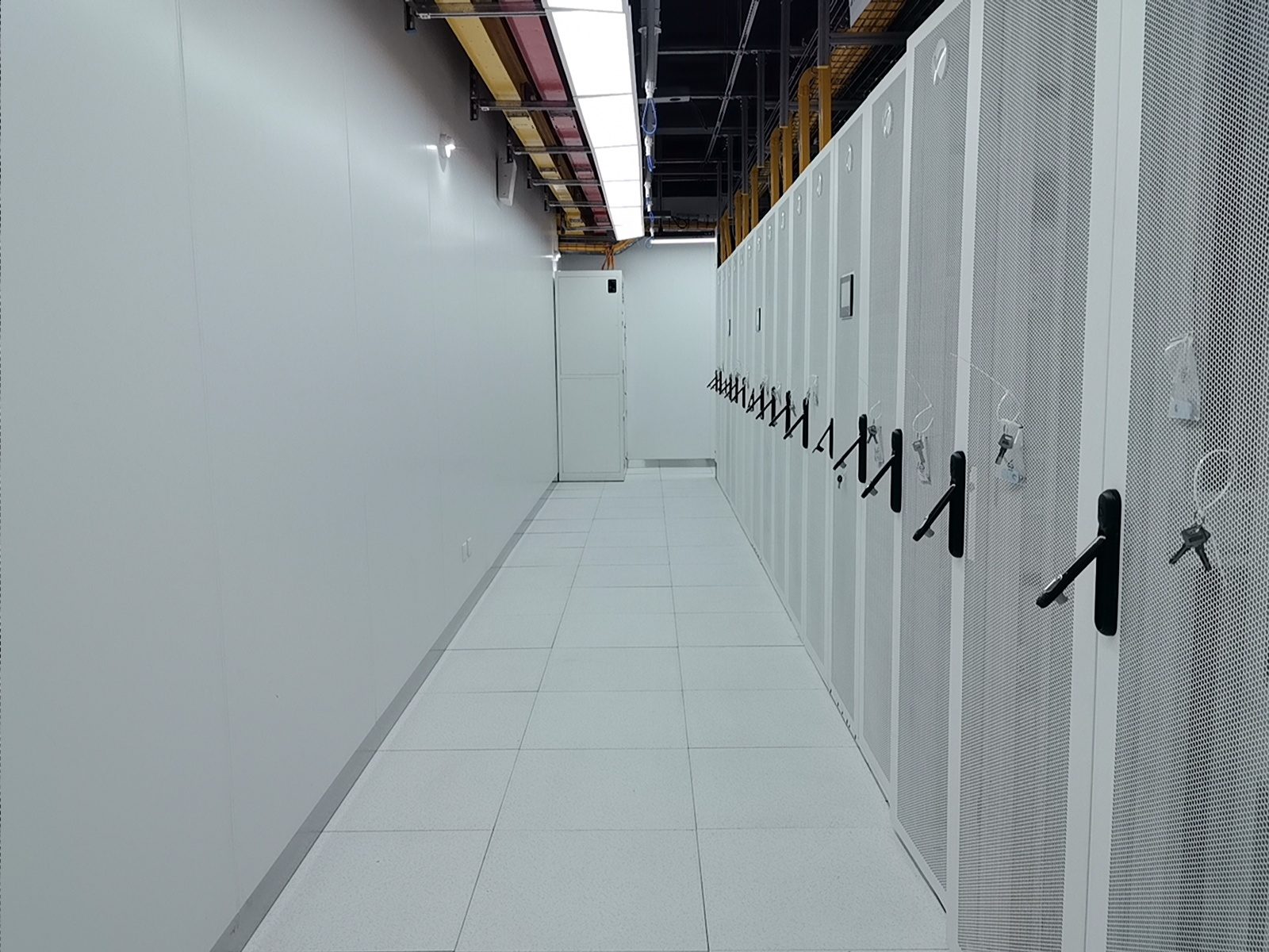 通過部署華為一體化模塊化UPS,我們實現(xiàn)了設(shè)備空間占用的顯著節(jié)約、連接線纜的減少以及系統(tǒng)可靠性的提升。維諦品牌的微模塊成套系統(tǒng),包括機(jī)柜、精密空調(diào)、動環(huán)監(jiān)控和電池監(jiān)控等組件,不僅系統(tǒng)集成度高,而且可靠性強,其軟件平臺的開發(fā)響應(yīng)也十分及時。西門子的密集母線和智能小母線系統(tǒng),集成了母線測溫和在線監(jiān)控功能,進(jìn)一步增強了系統(tǒng)的可靠性。封閉熱通道的設(shè)計,確保了系統(tǒng)擁有充足的冷量儲備,從而提高了容災(zāi)能力。封閉通道的玻璃觀察地板和內(nèi)部管道的PVC彩殼包覆,不僅保證了整體風(fēng)格的統(tǒng)一和協(xié)調(diào),還提升了美觀度。仿真測試機(jī)房3,一個280平方米的屏蔽機(jī)房,其頂面殼體設(shè)計為平頂,并且封閉熱通道采用了95吋LED顯示屏整體式移門,極大地提升了觀摩機(jī)房的視覺效果。在整體顏色管理方面,我們采用了紅/黃雙色對供配電A/B路、密集母線、智能小母線、電力電纜、PDU外殼等進(jìn)行區(qū)分,確保了清晰醒目。此外,采用彩鋼板墻面和夾心彩鋼板頂面,有效提升了機(jī)房的潔凈度和防塵能力。