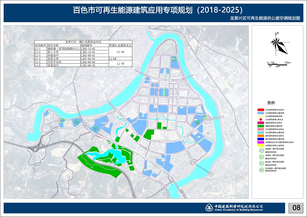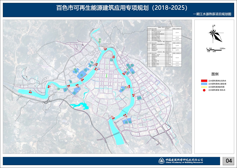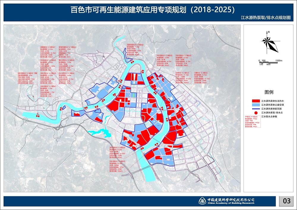 本規(guī)劃大規(guī)模應(yīng)用江水源熱泵。劃針對(duì)百色市獨(dú)特的豐富水源——右江水系,專門制作江水源熱泵規(guī)劃專篇,研究江水源熱泵效率的各影響因子,以取排水點(diǎn)互不干擾為原則,科學(xué)排布取排水點(diǎn)。并根據(jù)建筑物布置確定江水源熱泵站點(diǎn)位置。