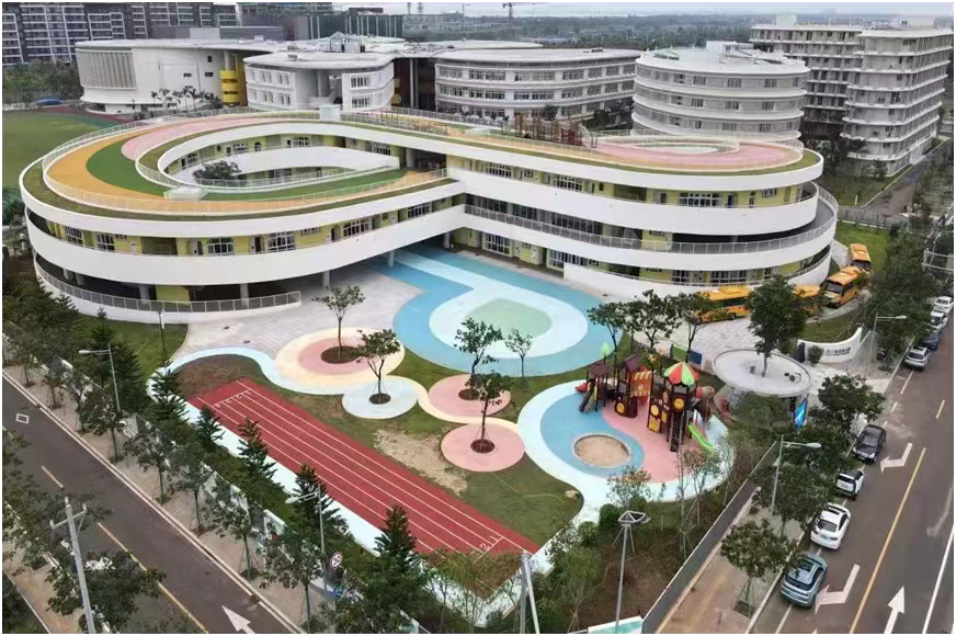 學(xué)校秉承國際化設(shè)計(jì)理念,集智慧化學(xué)習(xí)空間、舒適性生活空間、多層次活動(dòng)空間于一體,涵蓋高級中學(xué)與幼兒園,配套建設(shè)多功能體育設(shè)備和開放式場館、“高顏值”教室、圖書館、多功能禮堂等9棟單體建筑,打造出友好的學(xué)習(xí)氛圍、智能化起居環(huán)境、營造了精彩的生活社區(qū)。可供1728個(gè)高中學(xué)位與450名幼兒學(xué)童。