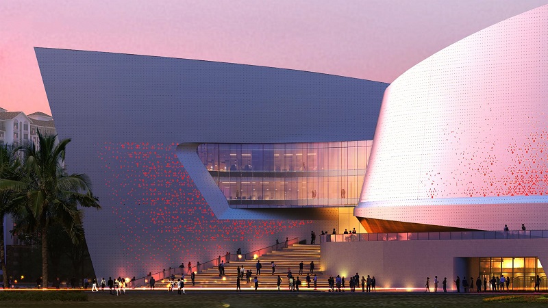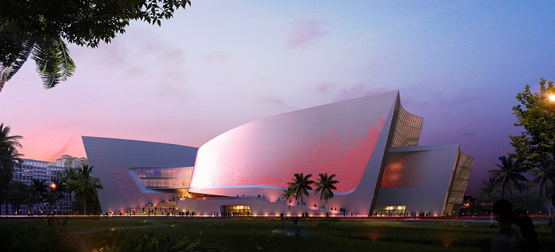 海南省非物質(zhì)文化遺產(chǎn)展示中心項(xiàng)目位于海南省??谑协偵絽^(qū),總建筑面積52180平方米,建筑高度42米,是海南省十大重點(diǎn)公共文化工程首批落地實(shí)施項(xiàng)目。該項(xiàng)目為瓊劇院、非遺博物館及藝術(shù)中心三大功能合一的文化綜合體,主要設(shè)有大劇場(chǎng)、實(shí)驗(yàn)小劇場(chǎng)、綜合排演廳、黎錦館、非遺陳列館、非遺體驗(yàn)傳習(xí)館、非遺傳承人技藝活態(tài)展示館、藝術(shù)中心等多種類型公共文化設(shè)施。