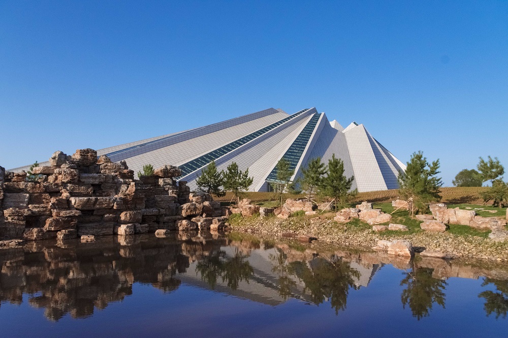 頂部的采光帶,以及鏤空處光影的引入,豐富了室內(nèi)的空間,象征萬里浩瀚的星空,將人們的思緒帶到遙遠的年代,有棱角的折面,表現(xiàn)了成杰思汗時代的力量。