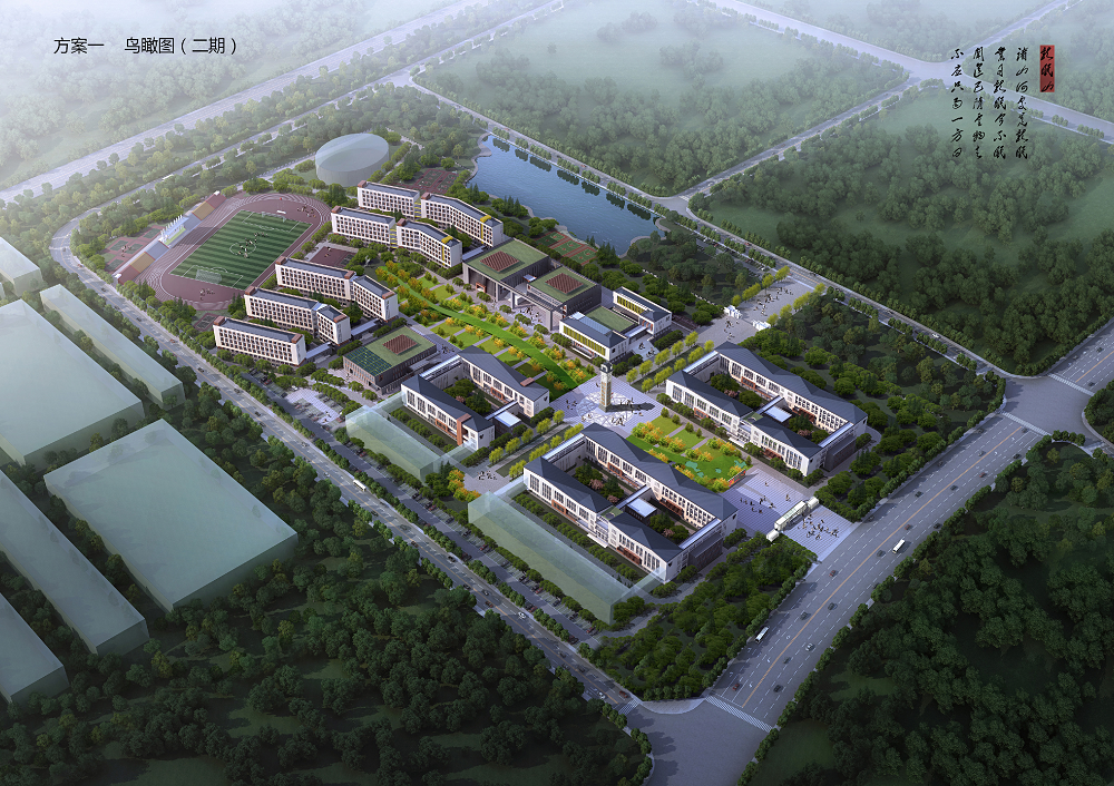軸線為重點,方正有秩,主次分明。同時受邊界、河流影響引入自然導向構圖,以此形成整個校園的規(guī)劃結構。這樣的結構,形成了張與弛、疏與密、剛與柔并存,形式和空間相呼應的統(tǒng)一體,產(chǎn)生了校園的形式感與場所感,體現(xiàn)了井然有序、和諧天成的人文精神。