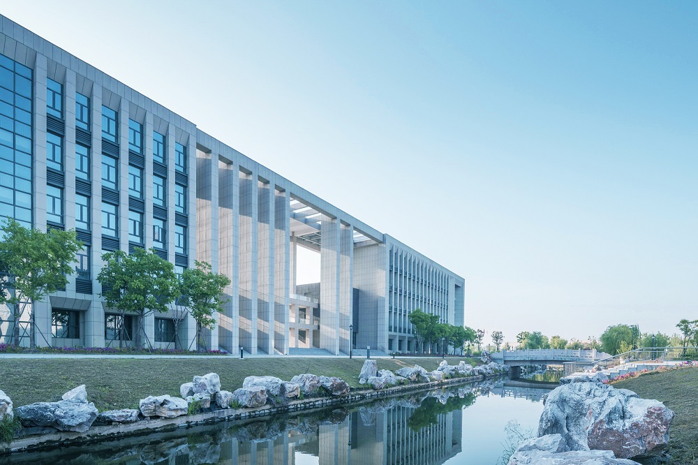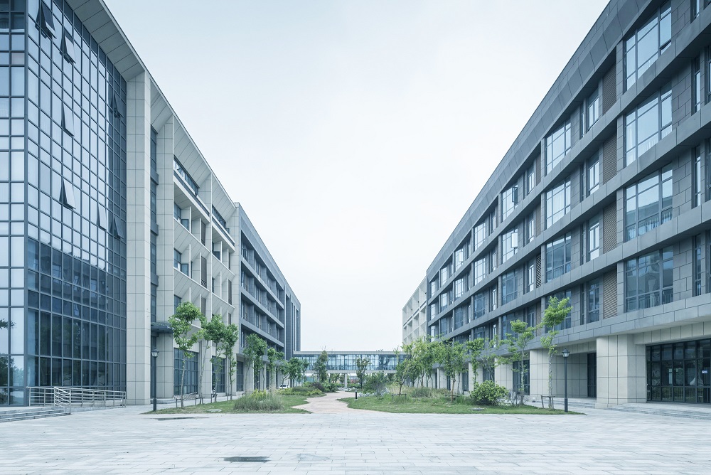 建筑設(shè)計秉承傳承與創(chuàng)新的核心理念。研究高等教育起源校園規(guī)劃手法與東西方校園開放空間策略,奠定校園核心區(qū)域教學(xué)區(qū)、實訓(xùn)區(qū)基調(diào)。教學(xué)區(qū)嚴(yán)謹(jǐn)莊重,打造軸線分明的共享空間,視為傳承;實訓(xùn)區(qū)流動拓展,打造平等、自由、交流、學(xué)習(xí)的氛圍,視為創(chuàng)新。結(jié)合江蘇泰州當(dāng)?shù)亟ㄖ伾c現(xiàn)代校園色彩體系,體系校園的文化與嚴(yán)謹(jǐn)。