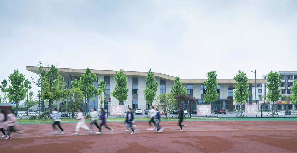 空間規(guī)劃上,打造以場地水系的改造為基礎(chǔ)、貫穿場地東西的創(chuàng)新軸,與主入口和湖面自然串聯(lián)的南北軸線傳承軸。建筑設(shè)計突破傳統(tǒng)教學(xué)樓與地面的簡單垂直空間關(guān)系,利用柱廊、下沉、屋頂平臺等手法,讓立體的校園空間具有了流動性和交流性,最大化豐富了學(xué)生的交流活動空間。