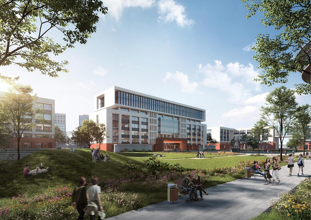 設(shè)計(jì)規(guī)劃在校學(xué)生10000人,新校區(qū)總體規(guī)劃以建設(shè)全國(guó)一流高等職業(yè)院校校園為目標(biāo),塑造沿空間主軸生長(zhǎng)、沿生活水軸展開(kāi)的優(yōu)美校園空間形態(tài)。