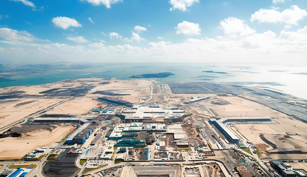 廈門新機場位于廈門市翔安區(qū)大嶝街道大嶝島東南端,是一座通過填海造陸建設(shè)的機場。機場航站樓由1座主樓、6條指廊、77座登機橋、196個機位構(gòu)成。航站樓面積為55萬平方米。是重要的國際機場、區(qū)域性樞紐機場和臺灣海峽兩岸交流的門戶機場。結(jié)構(gòu)平面尺寸大,板最大長度324m(無收縮縫),溫度應(yīng)力控制要求高。一標段主航站樓二層、三層、板中及部分梁中采用緩粘結(jié)預(yù)應(yīng)力技術(shù)控制樓板溫度應(yīng)力及梁裂縫。二標段B指廊二層,C指廊一層夾層和二層樓板中采用緩粘結(jié)預(yù)應(yīng)力技術(shù),控制樓板溫度應(yīng)力。全球少見的海島型機場,環(huán)境腐蝕性強,結(jié)構(gòu)耐久性要求高。