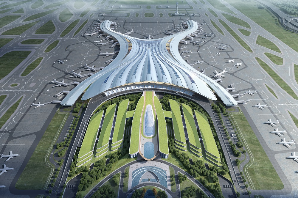廣州白云國際機場三期擴建工程T3航站樓采用集中式主樓+指廊式構(gòu)型,由主樓、東南指廊、西南指廊、東北指廊、西北指廊、東指廊及西指廊組成,航站樓總建筑面積為49.86萬平方米,建筑高度42.95米,整體南北方向長970米,東西寬592米。