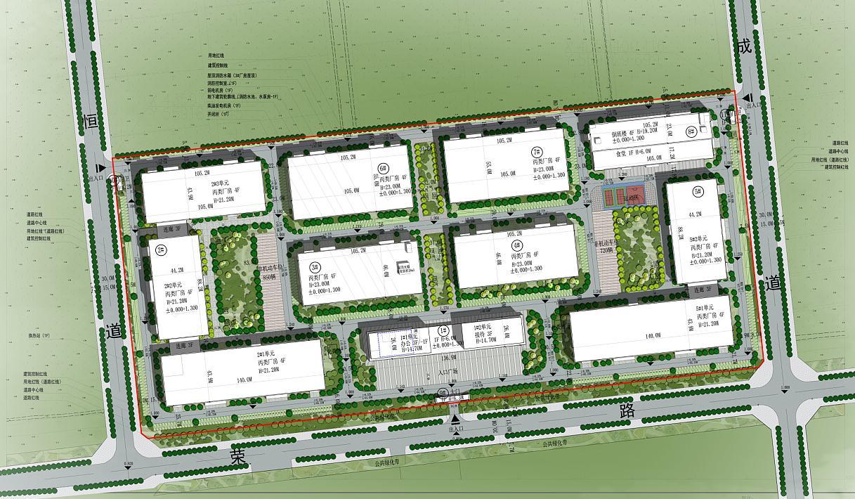 蘆臺(tái)農(nóng)業(yè)產(chǎn)業(yè)融合示范基地項(xiàng)目,位于蘆臺(tái)經(jīng)濟(jì)開(kāi)發(fā)區(qū)富恒道東側(cè)、榮錦路南側(cè)、富成道西側(cè)、榮昌路北側(cè),是一個(gè)集設(shè)計(jì)與施工總承包于一體的發(fā)展項(xiàng)目。該項(xiàng)目的用地布局規(guī)整,形狀接近正方形,東西向長(zhǎng)約545米,南北向?qū)捈s246米。項(xiàng)目南側(cè)緊鄰榮昌路,規(guī)劃有一條10米寬的城市公園綠地,周邊建筑數(shù)量有限。項(xiàng)目的主要建設(shè)內(nèi)容包括辦公樓、標(biāo)準(zhǔn)廠房、倒班樓、食堂、設(shè)備房、門衛(wèi)管理用房等,共計(jì)11棟建筑。其中,包含6棟新建的四層丙類標(biāo)準(zhǔn)廠房、1棟新建的三層辦公樓(局部帶有地下一層)、1棟新建的四層倒班樓(首層設(shè)有食堂)以及3棟單層門衛(wèi)房。此外,新建的附屬配套工程涵蓋了管網(wǎng)工程、道路硬化、綠化工程等。